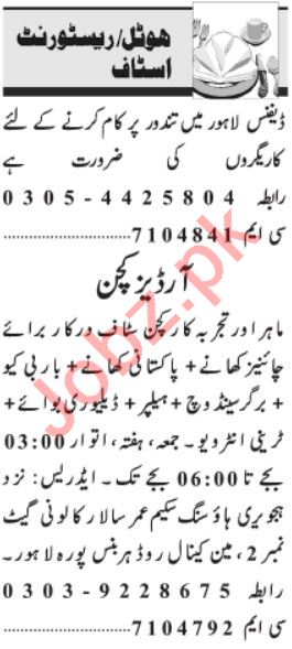 Hotel & Restaurant Staff Jobs 2021 In Lahore