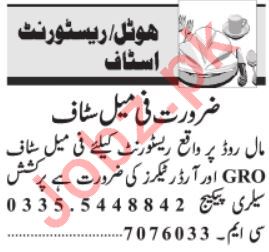 Vacancies in Hotel & Restaurant Advertisement December 2019