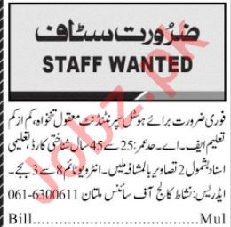 Apply as per details in job advertisement. Login to view further details of how to apply via https://www.jobz.pk online.