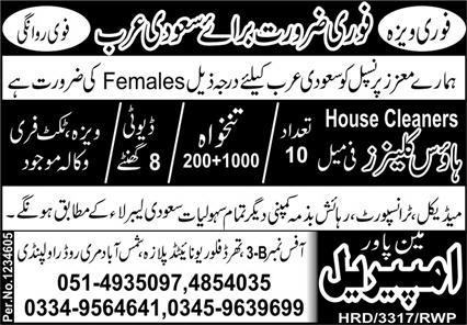 Imperial Manpower Overseas Employment Promoters is looking for candidates for following posts as per job advertisement published in daily Express Newspaper of October 11, 2022 for location Saudi Arabia, saudi arabia Saudi Arabia: