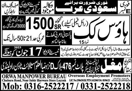 Mughal Trade Test & Technical Training Center jobs advertisement dated about 16 June 2023 in daily Express Newspaper invites application for the vacant post of house cook and cook in Jeddah, riyadh Saudi Arabia. Preferred Education is Intermediate and Matric etc.