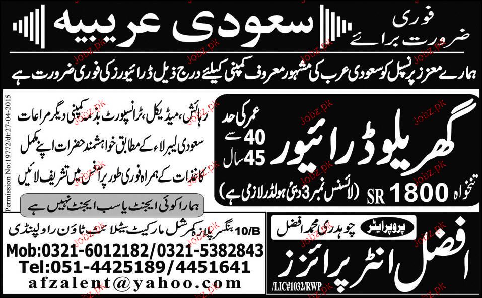 House Drivers are required in Saudi Arabia.