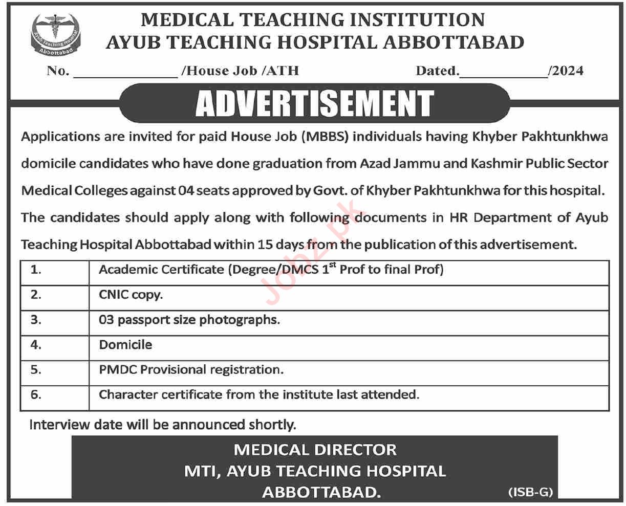 House Job Advertisement At Ayub Teaching Hospital ATH