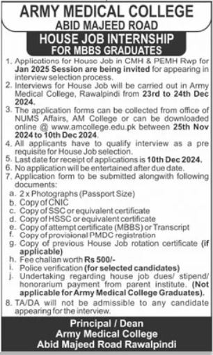 Latest Army Medical College Medical Posts Rawalpindi 2025
