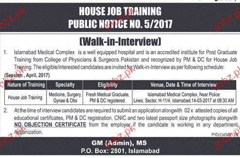 Apply as per details in job advertisement. Login to view further details of how to apply via https://www.jobz.pk online.