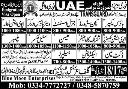 Blue Moon Enterprises invites applications for job positions advertised in daily Express dated 7 January 2025 for following vacancies in Abu Dhabi, abu dhabi UAE.