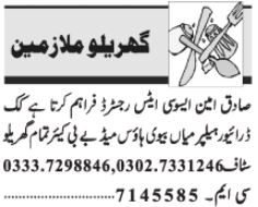Sadiq Amin Associates jobs advertisement dated about 4 May 2024 in daily Jang Newspaper invites application for the vacant post of cook, husband wife, house maid, driver, helper and baby care in Lahore, lahore Punjab Pakistan. Preferred Education is Middle, Matric and Primary etc.