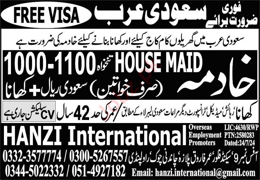 Latest Hanzi International Overseas Employment Promoters House Staff Posts Jeddah 2025
