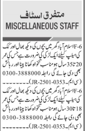 Latest House House Staff Posts Islamabad 2025