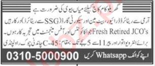 Vacant posts including retired jco, house maid, retired batman, retired driver, house servant and security guard are announced in House Rawalpindi, rawalpindi Punjab Pakistan as per 10 June 2024 advertisement in daily Jang Newspaper. Educational qualifications required Intermediate, Matric, Primary, Bachelor and Middle etc.