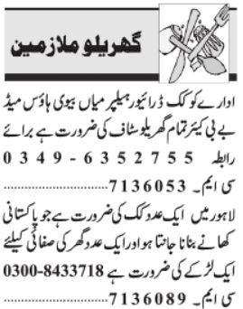 House is looking for candidates for following posts as per job advertisement published in daily Jang Newspaper of August 11, 2023 for location Lahore, lahore Punjab Pakistan:
