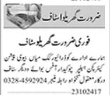 Apply as per details in job advertisement. Login to view further details of how to apply via https://www.jobz.pk online.