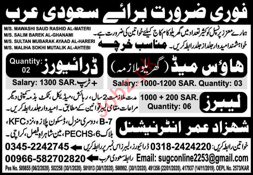 Latest Shahzad Umer International House Staff Posts Saudi Arabia 2025