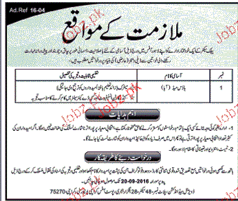 Apply as per details in job advertisement. Login to view further details of how to apply via https://www.jobz.pk online.