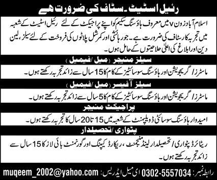 Housing Scheme jobs advertisement dated about 8 January 2023 in daily Jang Newspaper invites application for the vacant post of tehsildar, sales officer, project manager, patwari and sales manager in Islamabad, islamabad Islamabad Pakistan. Intermediate, Bachelor and Master etc. educational qualification will be preferred.