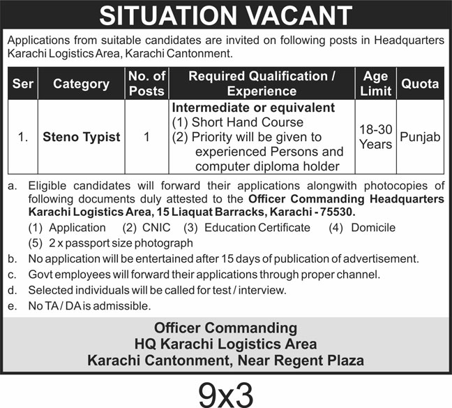 Latest Headquarter Logistics Area Management Posts Karachi 2025