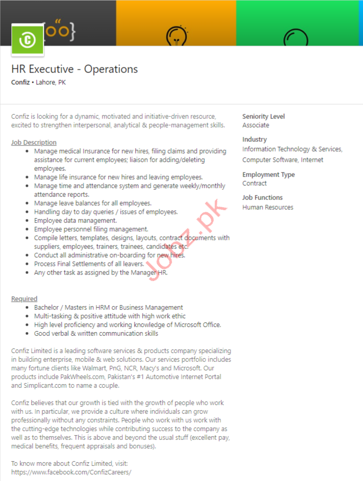Latest Confiz Limited Human Resource Posts Lahore 2025