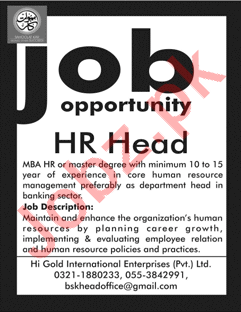 Latest Hi Gold International Enterprises Pvt Ltd Management Posts Gujranwala 2025