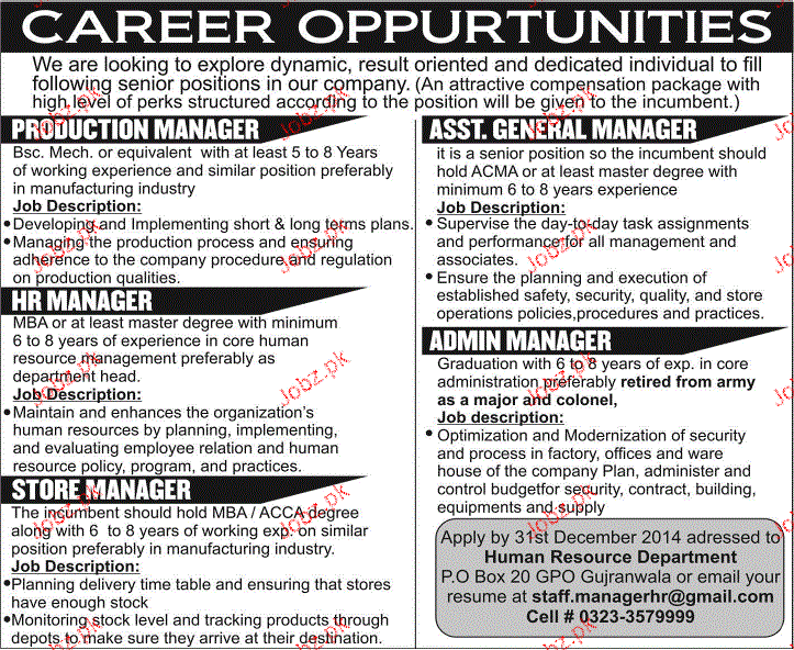 HR Manager, Admin Manager, Store Manager Job Opportunity