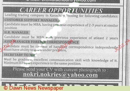 HR Manager, Assistant Manager Foreron Correspondence Wanted