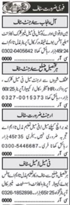 Private Company Lahore, lahore Punjab Pakistan invites applications from eligible candidates for the post of field worker, helper, hr manager, call operator, clerk, assistant manager, manager, female manager, accountant, office boy, female clerk, computer operator, office staff and supervisor as per advertisement of August 22, 2023 published in daily Khabrain Newspaper. Educational qualifications required Intermediate, BBA, Middle, Bachelor, I.com, Matric, B.com and BA etc.