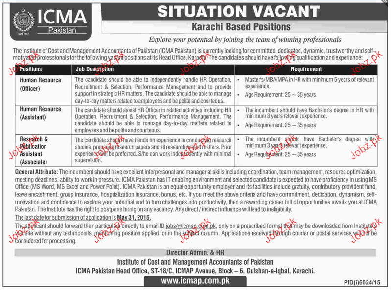 Apply as per details in job advertisement. Login to view further details of how to apply via https://www.jobz.pk online.