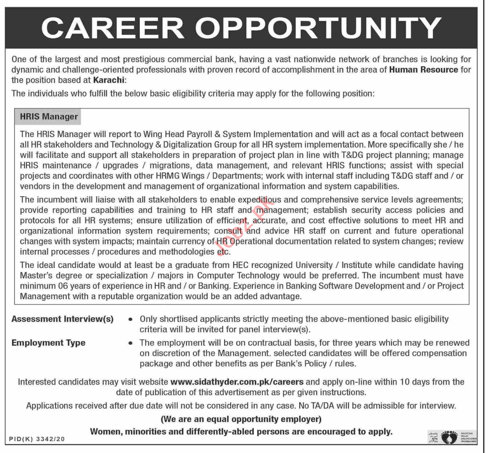 HRIS Manager & Manager Jobs 2021 In Karachi