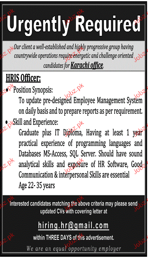 Apply as per details in job advertisement. Login to view further details of how to apply via https://www.jobz.pk online.