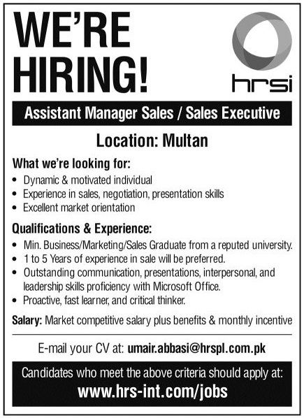 Latest Human Resource Solution International HRSI Sales Posts Multan 2025