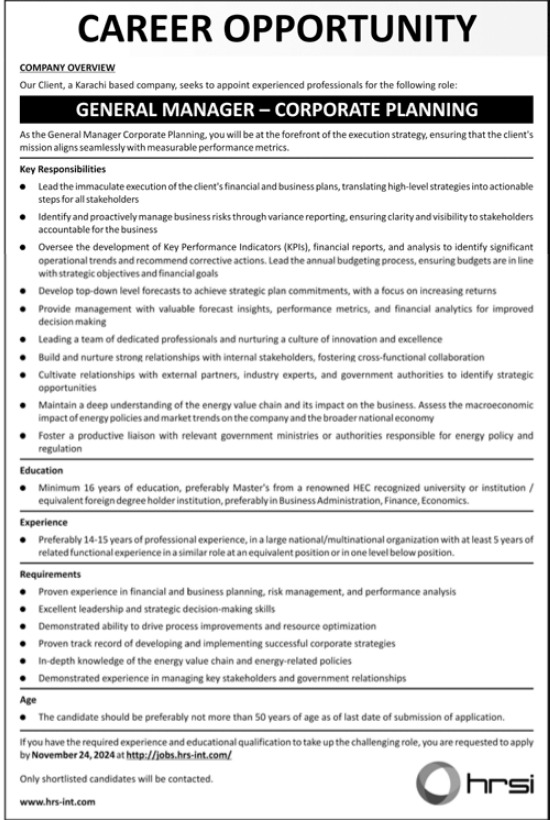 HRSI Karachi General Manager Jobs 2024