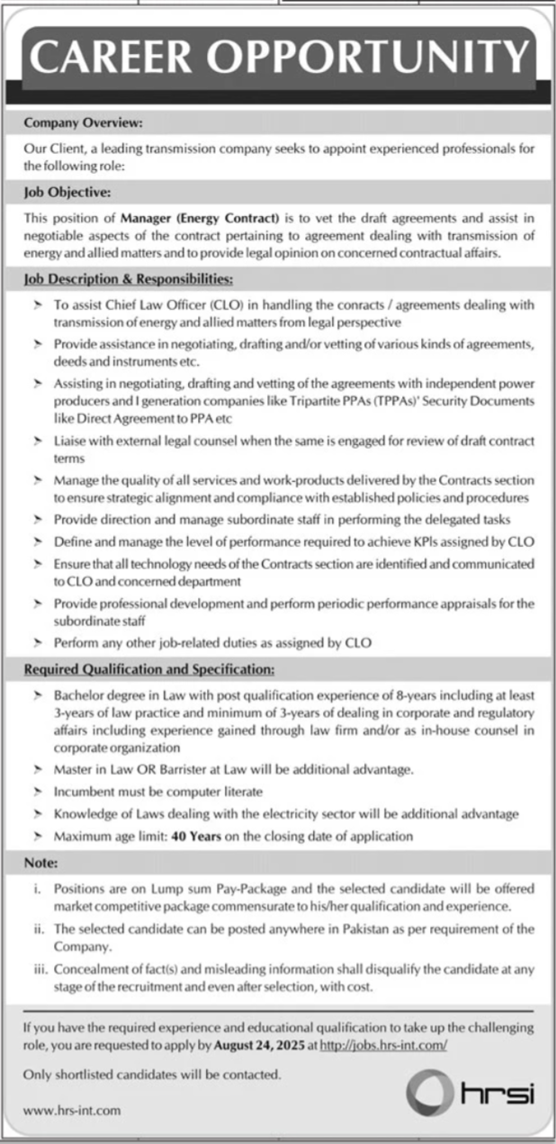 Vacancies in Human Resource Solution International HRSI Advertisement August 2025