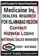 Hospital Supply Corporation jobs advertisement dated about 14 April 2025 in daily Jang Newspaper invites application for the vacant post of medicaine injection dealer in Rawalpindi, rawalpindi Punjab Pakistan. Preferred Education is Intermediate and Bachelor etc.