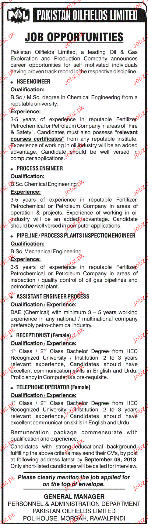 Apply as per details in job advertisement. Login to view further details of how to apply via https://www.jobz.pk online.
