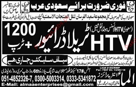 Vacancies in Almaa Enterprises Advertisement September 2018