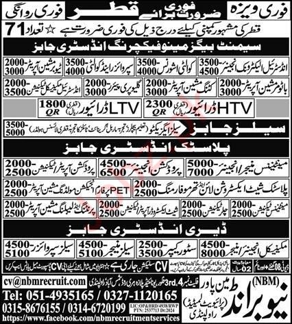 New Brand Manpower is looking for candidates for following posts as per job advertisement published in daily Express Newspaper of May 19, 2024 for location Doha, doha Qatar: