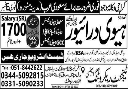 Latest Overseas jobs in Tangent Recruiting Agency in Driving and others can be applied till 31 March 2022 or as per closing date in newspaper ad. Read complete ad online to know how to apply on latest Tangent Recruiting Agency job opportunities. Salary varies from 83000. Earn extra money with overtime. During job accommodation, transport and medical facility is available.
