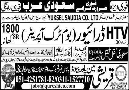 Qureshi Manpower Bureau latest Overseas Driving jobs and others can be applied till September 2, 2023 or as per closing date in newspaper ad. Read complete ad online to know how to apply on latest Qureshi Manpower Bureau job opportunities. During job food and accommodation facility is available.