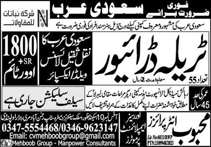 Mehboob Enterprises Overseas Employment Promoters jobs advertisement dated about 22 February 2024 in daily Express Newspaper invites application for the vacant post of traila driver, htv driver and driver in Riyadh, dammam Saudi Arabia. Candidates with Intermediate and Matric etc. educational background will be preferred.