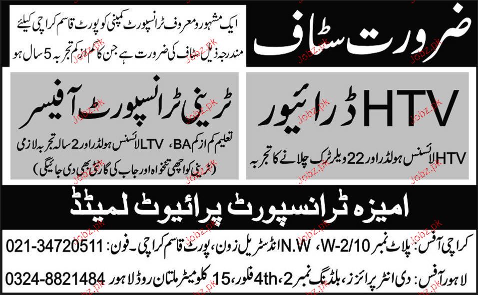HTV Drivers and Trainee Transport Officers Job Opportunity