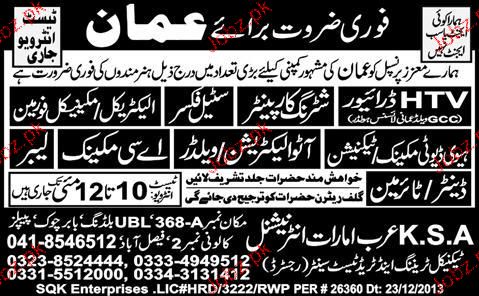 HTV Drivers, Shuttering Carpenters Job Opportunity