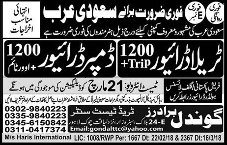 Latest Gondal Trade Test & Training Center Driving Posts Saudi Arabia 2025