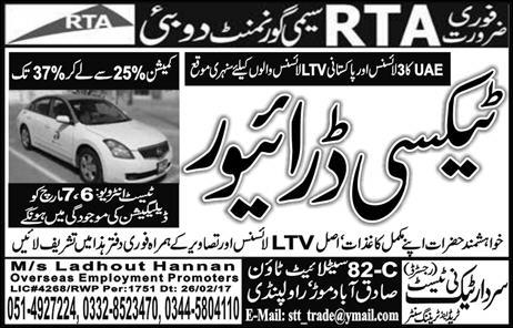 HTV / LTV Taxi Driver Job in UAE RTA Semi Government Company
