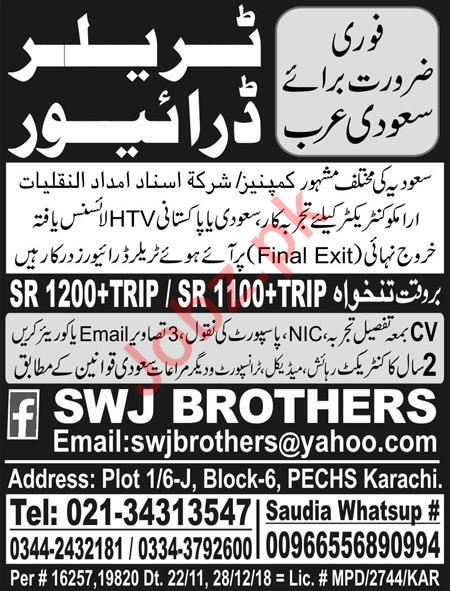 Vacancies in SWJ Brothers Advertisement March 2019