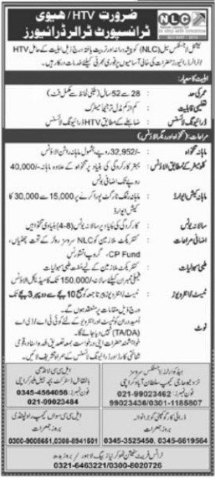 HTV Transport Tralla Driver Jobs In National Logistic Cell