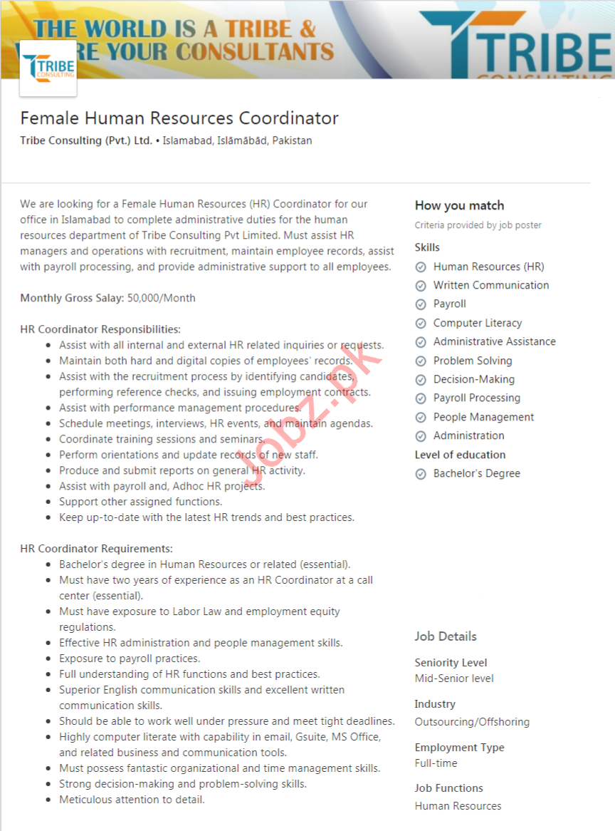 Latest Tribe Consulting Pvt Ltd Human Resource Posts Islamabad 2025