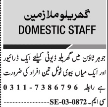 House is looking for candidates for following posts as per job advertisement published in daily Jang Newspaper of April 3, 2025 for location Johar Town Lahore, lahore Punjab Pakistan: