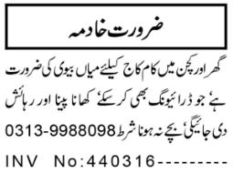House jobs advertisement dated about 5 April 2025 in daily Aaj Newspaper invites application for the vacant post of driver, husband wife and kitchen helper in Peshawar, peshawar Khyber Pakhtunkhwa KPK Pakistan. Candidates with Middle and Primary etc. educational background will be preferred.