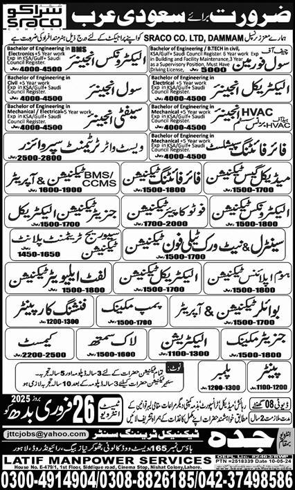 Jeddah Technical Trade Center is looking for candidates for following posts as per job advertisement published in daily Express Newspaper of February 21, 2025 for location Riyadh, dammam Saudi Arabia: