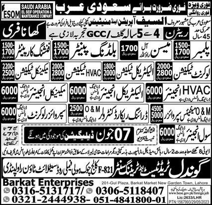 Gondal Trade Test & Training Center latest Overseas Industrial jobs and others can be applied till June 7, 2023 or as per closing date in newspaper ad. Read complete ad online to know how to apply on latest Gondal Trade Test & Training Center job opportunities. Skills in Carpentry, Masonry, Painting, Engineering, Civil Engineering, HVAC, Mechanical Engineering, Electrical Engineering, Plumbing and Drawing may be preferred for these Gondal Trade Test & Training Center jobs. Salary varies from 467000. Earn extra money with overtime. On job medical, accommodation and transport facility is provided.