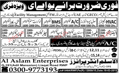 HVAC Engineers, Assistant Technicians, Plumbers Wanted